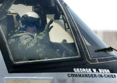 美國總統(tǒng)布什年輕時(shí)曾經(jīng)擔(dān)任得克薩斯州國民警衛(wèi)隊(duì)?wèi)?zhàn)斗機(jī)飛行員,但自從入主白宮后,這位“戰(zhàn)爭總統(tǒng)”根本沒機(jī)會(huì)過把駕機(jī)癮。每次出遠(yuǎn)門,總是先從白宮乘“海軍陸戰(zhàn)隊(duì)一號”直升機(jī)抵達(dá)機(jī)場,然后轉(zhuǎn)乘“空軍一號”專機(jī)。1日,為前往美“林肯號”航空母艦發(fā)表有關(guān)伊拉克戰(zhàn)爭結(jié)束的講話,同時(shí)鼓舞士氣,這位總統(tǒng)竟然提出要乘坐F-18型雙座教練機(jī)從圣迭哥飛行數(shù)百公里降落在航空母艦甲板上,然后在當(dāng)天晚上9點(diǎn)(北京時(shí)間2日上午9點(diǎn))發(fā)表全國講話,宣布伊拉克境內(nèi)戰(zhàn)斗“基本結(jié)束”,但是“不達(dá)最終目的,美軍絕不收兵”。