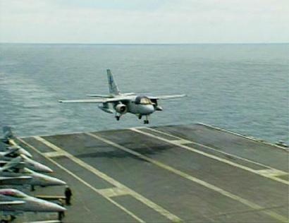 不過,負(fù)責(zé)總統(tǒng)安全保衛(wèi)工作的人員堅(jiān)決反對讓布什一個(gè)人“上天”,最終,雙方達(dá)成妥協(xié)。布什先乘坐“空軍一號”專機(jī)抵達(dá)圣迭哥,然后換乘一架定員四人的小型飛機(jī):S-3B“海軍一號”前往“林肯”號上“勞軍”。在飛行途中,布什一直坐在“副駕駛”位置上。除飛行員外,機(jī)上還有一名保鏢和海軍官員。當(dāng)年,這位總統(tǒng)曾經(jīng)駕駛過F-102型截?fù)魴C(jī)。此前,登上航空母艦視察的美國總統(tǒng)都乘坐直升飛機(jī)降落在甲板上,不過,這次“林肯”號距離海岸太遠(yuǎn),超過直升機(jī)行程,以致布什能“親自享受副駕駛的感覺”。