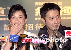 歌星黎明、影星劉嘉玲5月2日在香港出席電影《無間道Ⅱ》及《無間道Ⅲ終極無間》新聞發(fā)布會,兩人將加入演出《無間道Ⅱ》及《無間道Ⅲ終極無間》,黎明將飾演一名警司。鄧慶樂 攝