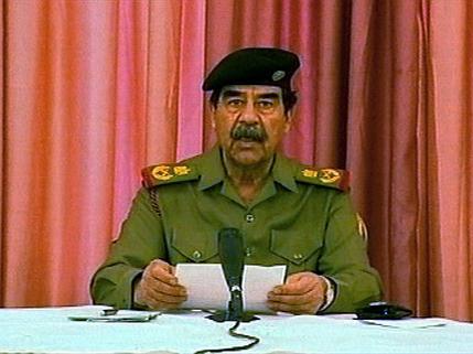 在這盤(pán)錄像帶上,面容疲憊的薩達(dá)姆發(fā)表講話,號(hào)召伊拉克人民起來(lái)反抗以美國(guó)為首的聯(lián)軍部隊(duì)的入侵。
