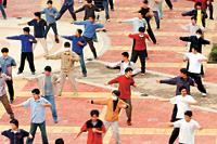 時(shí)至今日,交大校園已經(jīng)恢復(fù)了平靜,但這種平靜不似以往長假學(xué)生離校后的爽快。一位交大同學(xué)對記者說,原來校園里到處都是人,現(xiàn)在該走的都走了,校園反而是最安全的地方。操場上,一些沒有離校的大學(xué)生做著各種體育鍛煉。