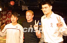 中新網5月12日電 姚明抿著嘴,伸開他21厘米長的手掌,就象在NBA賽前臨戰一樣。不過,11日晚,姚明參加的是另一場“戰斗”,抗擊“非典”的戰斗。