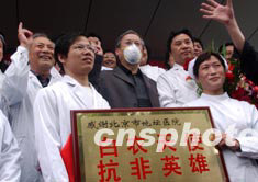 圖:謝飛今日于地壇醫院治療"非典"康復出院