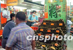 臨近端午節,香港店鋪擺滿了各式各樣的粽子,供顧客挑選。中新社傳真 譚達明 攝