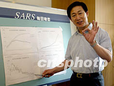 韓德民說,今天的數字與我們早前的預計基本吻合,原因在于:四月中旬開始北京采取的緊急應對措施從五月中旬逐步見效。四月十七日,北京地區防治非典工作聯合小組成立;四月二十五日,北京市SARS醫療救治指揮中心成立,由中共北京市委副書記強衛、副市長張茅直接領導,韓德民就任總指揮,全面負責北京地區的SARS醫療救治。指揮中心立即采取有效措施,在市政府各有關部門的全力配合下,大規模集中收治SARS病人;尤其注重集中收治SARS重癥和危重患者;在全市六十七家醫院發燒門診的配合下,在短期內將分散在全市九十多家醫院的SARS患者全部安全轉運到定點醫院;指揮中心的醫療重癥組專家分別對多家醫院病例進行調查指導,組建全市的重癥搶救系統等措施。