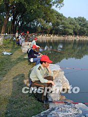 為使我們在隔離區內的生活有聲有色,院政治部在我們活動區的湖泊里投放七千斤鯉魚,舉行釣魚比賽。我這個早就想當官的“官迷”終于過了一把癮,擔任此次釣魚比賽裁判組的副裁判長。可是以前我從沒摸過魚桿,怎么辦呢?好在有Internet,可以臨陣磨槍。我一大早趴在電腦前,研究了半天,從魚兒的喜好到水質的要求、從投桿下水到提桿上岸,無不了解個清清楚楚明明白白。參賽人員更是如此,早就按捺不住來到湖邊,熟悉水域、勘察魚情、幾個人指指點點互相交流著心得,把醫務人員嚴謹的工作態度淋漓盡致地發揮到了賽場上,忙個不亦樂乎!有經驗之人傳授:香油拌面粉乃魚兒最喜愛之食品也!更有詩興大發者,曰:小湯山前喜鵲飛;桃花流水鯉魚肥;小紅帽,白蓑衣;斜風細雨不須歸。