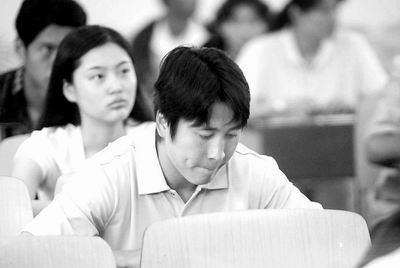 8點50分,考官開始宣講考場紀律,顯然考生中有祁宏的熟人,他邊點頭打招呼,邊笑嘻嘻地把書包放到較遠的座椅上。其他考生也先后收好復習卷、參考書,迅速安靜了下來。考試兩小時后結束,答完考卷的考生們議論紛紛地走出了考場。