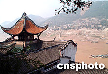 中新網(wǎng)6月9日電 中廣網(wǎng)消息:今天(6月9日)三峽工程正式蓄水進(jìn)入第九天,上午八點(diǎn),重慶庫(kù)區(qū)巫山水位達(dá)到130·76米,張飛廟正式進(jìn)水,遺址前“大江保障”、“浩氣長(zhǎng)存”兩幅摩巖題刻已經(jīng)沉入江中。與張飛廟隔江相望、有著1400多年歷史的云陽(yáng)老縣城也正被江水?dāng)埲霊驯,三點(diǎn)五公里長(zhǎng)的環(huán)城路已全部沉入江底。
