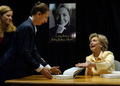 一襲淺色服飾的希拉里九日中午來到位于紐約曼哈頓中城五大道上的一家書店為她的回憶錄舉行首發簽名售書活動,當時書店外已經有幾百人在排隊。書店原本計劃只有兩百五十名讀者能獲得希拉里的親筆簽名,但希拉里興致極好,不但簽名,還問候每一個讀者,將原定的一個小時的簽名時間延長了一個半小時。在兩個半小時的時間里,一千多人購買了這本回憶錄并得到了希拉里的簽名,其中女性讀者占多數。