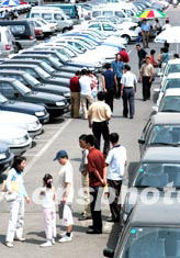 六月中旬,北京市民攜家?guī)Э谠诒狈狡囀袌鲞x購汽車。車市層出不窮的新面孔和經(jīng)濟型轎車的價格一降再降,極大地刺激著消費者的購車欲望,使北京各汽車銷售市場又出現(xiàn)年初如火如荼景象。中新社記者:王麗南