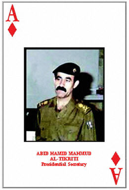 據法新社報道,中央司令部發表聲明說:“馬穆德將軍現已被聯軍拘押。他周一在伊拉克境內被聯軍抓獲!彼诿绹械囊晾饲罢䴔嘁獑T通緝名單上排名第4,是撲克牌通緝令中的方塊A。