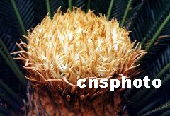 2003年6月,重慶永川市茶店鎮政府大院內的雌雄兩株鐵樹同時綻放花朵。鐵樹開花,本已不易,而雌、雄同時盛開,更屬罕見,引得當地群眾爭相前去觀看。據了解,鐵樹開花時間為兩個月,雌樹花蕊呈圓盤狀,含苞欲放,直徑25厘米,高20厘米;雄樹花蕊妝如立卵,直徑20厘米,高40厘米。陳仕川 攝