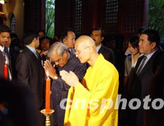 印度總理瓦杰帕伊二十五日在河南洛陽參觀“中國第一古剎”白馬寺。作者:何曉聰