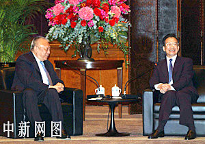 國務院總理溫家寶6月29日在下榻的酒店,會見特首董建華并與工商界知名人士親切交談。洪少葵 攝