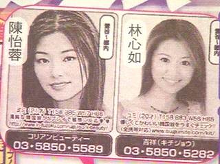 中新網6月30日電 在日本最新一期成人八卦雜志《周刊實話》中,0204號的小廣告中竟然赫然出現了中國臺灣玉女偶像陳怡蓉及林心如的照片,她們不僅被說成是韓國女生,還被冠上了不實年紀及三圍尺寸。