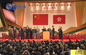 溫家寶說,六年來的實踐充分表明∶鄧小平先生提出的“一國兩制”偉大構想是具有強大生命力的;“一國兩制”、“港人治港”、高度自治的基本方針和香港特別行政區基本法是完全正確的;掌握了自己命運的香港人完全有能力治理好香港。這既是歷史的結論,也為全世界所見證。