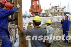 上海軌道四號(hào)線事故地?fù)岆U(xiǎn)進(jìn)入第五天。比起昨日的高溫天氣,今天的上海多了幾分清涼,但在中山南路董家渡附近的搶險(xiǎn)現(xiàn)場(chǎng),數(shù)千施工人員依然汗流浹背地緊張工作著。