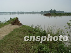 圖為被洪水沖破的河南固始縣三河尖鄉堤壩。作者:胡珂 史寶銀