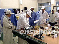 “今天試驗的內容是檢測一個儀器在衛星上遇到特殊情況能否自動關閉,也就是它的自動控制功能”吳季介紹說。用來做聯試的實驗室分為里外兩間,里間的一張4、5米長,2米寬的大桌子上模擬衛星中的狀態,放著8臺探測器和7臺服務設備,從表面上看,這些探測儀器像是一個個普通的小黑匣子。它們都被或粗或細的電纜線相互連接著。外間則是一圈的電腦,這里是模擬的衛星數據地面接受站,十幾個工作人員正在忙碌著。里外兩間實驗室中間隔著一堵玻璃墻,從外間進里間,必須要通過一個小小的“風淋”室,15秒鐘,吹掉身上的浮塵。因為里間的儀器試驗對環境有很高的要求,要將實驗室里浮塵的量控制在一定量之內。