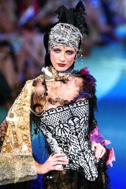 7月8日,法國巴黎2003-2004秋冬高級女裝展上模特展示設計師Christian Lacroix 的作品。