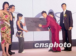 歌星許志安7月10日在香港與正東唱片公司續(xù)約,獲唱片公司高層送上越野車助慶,擔(dān)任大會司儀的鄭裕玲為他高興。作者:鄧慶樂