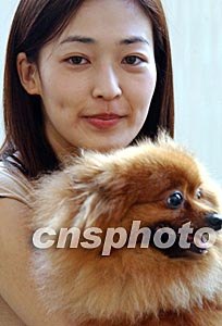 七月十三日,香港愛護動物協會舉行“寶寶健康快樂之星選舉”愛護動物活動,圖為一名女士抱著愛犬參加評選活動。中新社記者:錢興強