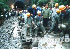 7月13日,位于陜西省西部的寶雞地區大雨滂沱,致使寶成鐵路寶雞境內的觀音山車站南約500米處發生險情,一處隧道被堵住,并有多處路基被沖跨。西安鐵路工程集團公司等單位千余名員工和武警官兵及當地群眾奮力搶險,使寶成鐵路在14日上午恢復通車。作者:霍倪