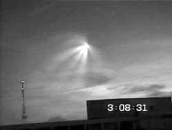 不過,不管怎么說,俄軍方要求天文愛好者把拍到的錄像給他們看看,結果斷定確實是二級火箭分離時的情景。至此,在全世界都鬧得沸沸揚揚的鄂木斯克城UFO之謎真像大白。圖為當時拍的奇異情景(徐冰川/聞新芳)