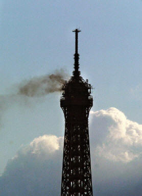 中新網(wǎng)7月23日電 據(jù)法新社報(bào)道,位于巴黎市塞納河南岸的埃菲爾鐵塔22日傍晚頂層突然起火,從電視畫面上可以看到滾滾濃煙像巨浪一樣涌向天空。