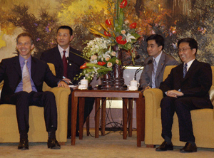 布萊爾拜訪了韓正市長并就雙方共同感興趣的經濟及商業合作進行了討論。雙方主要議題是通過英中合作來加強中國經濟的發展;研究英國公司在該合作進程中所起的作用;討論影響上海及中國其他地區商務環境的有關事宜。