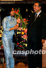 中國商務部部長呂福源二十三日在大連會見印度尼西亞工貿部長麗妮·蘇婉媂女士。中新社記者:鄭萍萍