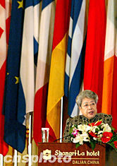 中新網(wǎng)7月24日電第五屆亞歐經(jīng)濟(jì)部長會(huì)議于今天上午9點(diǎn)在遼寧省大連市香格里拉大酒店舉行,國務(wù)院副總理吳儀出席會(huì)議開幕式并致辭。