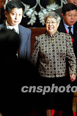 國務院副總理吳儀七月二十四日出席在大連舉行的亞歐經濟部長會議開幕式時,對世界各地人民,特別是亞歐會議在坐成員國,對中國抗SARS給予的理解、支持和幫助,深表感謝。中新社記者:鄭萍萍