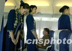 經(jīng)過了SARS對旅游經(jīng)濟(jì)的沖擊后,海南省的旅游市場目前已經(jīng)全面復(fù)蘇。周末假日,海南航空公司從各地飛往海南的班機(jī)全部爆滿,身著“海南服”的空姐歡迎來自四面八方的乘客。中新社記者:任晨鳴