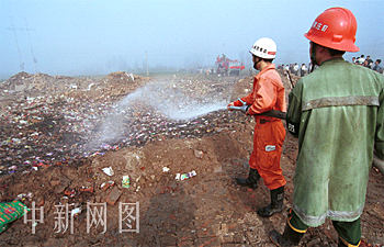 圖:辛集煙花廠爆炸消防人員趕赴現場滅火
