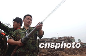 圖:辛集煙花廠爆炸消防人員趕赴現場滅火