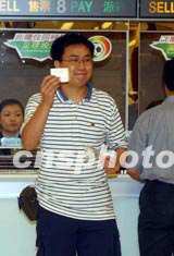 圖為市民黃先生是首位購得足球博彩票的香港市民。