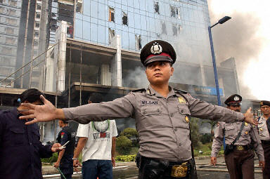 中新網8月5日電 據路透社報道,印尼首都雅加達南部的中心商業區附近的一家飯店發生劇烈爆炸。周圍幾幢建筑也受到爆炸沖擊。目擊者說至少有四具尸體被抬出現場。警方確認已有5人在爆炸中死亡,另有5人重傷。