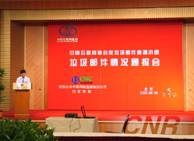 今天,中國互聯網協會在北京梅地亞中心還召開了"垃圾郵件情況通報會"。中國互聯網協會黃澄清副秘書長對目前垃圾郵件的狀況和中國互聯網協會反垃圾郵件協調小組即將采取的行動進行了通報。