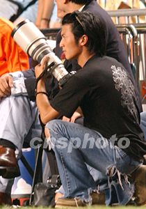 香港明星謝霆鋒,八月八日在香港大球場觀戰西班牙勁旅皇家馬德里對香港聯隊的比賽,并出動私伙長短炮,充當攝影師拍攝偶像。中新社記者:錢興強