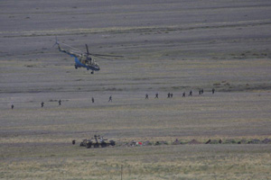 聯合指揮部迅速作出應對之策,指揮參演國武裝力量,在空中武裝直升機、特種空降部隊和地面裝甲、火炮、特種作戰等部隊的空地密切配合下,對非法越界的武裝分子展開了猛烈的攻勢。