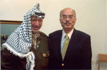 阮:我們去年9月21號我曾經到耶路撒冷,當初跟他約了9月22號下午,我記得很清楚是四點半,我們去之前約好的。我們飛機一降落耶路撒冷機場就聽到新聞,他的官邸已經被以軍包圍,不但包圍還轟擊,所以我們等了好幾天,又試圖闖關,不知道他住的地方,巴勒斯坦拉馬拉市到底是什么一種狀況。我們只能從電視看,所以我們曾經試圖四處闖關都沒有成功,我們就倉然而回了。到了今年5月,我們再度跟他接觸,他也同意,因為他對我們鳳凰一直是十分友好的。他也同意讓我們再去,結果我們要動身的時候發現以色列…,因為到巴勒斯坦沒有別的路走,只有陸路,約旦,安曼那個地方,陸路要走五六個小時。另外一個是從空中進去,但要經過以色列的同意,因為要經過特拉維夫的機場,可是特拉維夫機場對香港去的,SARS疫區的人要檢疫兩到三天。換句話說要住進醫院里去,我們那個時候也不能到醫院去住嘛,所以那次又推延了。