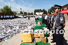 8月12日,“2003中國銷毀走私盜版光盤大行動”分別在全國各地舉行。北京警方會同有關(guān)部門公開銷毀非法盜版光盤120萬張。作者:李連杰