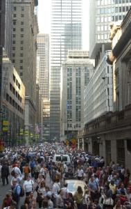 紐約市內街道上擠滿車輛,動彈不得。位于三十四街和第七大道口的賓州車站一片漆黑,街上擠滿了人。