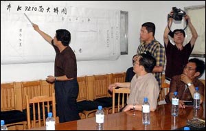 在后方指揮部的一間小會議室里,閃光燈在不停地閃爍,領(lǐng)導(dǎo)、煤礦負責人、記者,擠了滿滿的一屋人。晚上22點25分,山西省省委書記田成平從太原趕到陽泉,長形會議桌前,煤礦負責人正在掛在墻上的“裕公井K7210面大樣圖”前介紹煤礦和事故的基本情況。