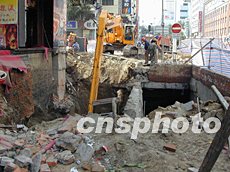 八月十六日晚十九時許,正在施工的哈爾濱“人和世紀廣場”地下工程發生塌方,至多人傷亡。搶救人員從十八日起開始從塌方處挖掘殘土,繼續尋找失蹤者。作者:寧秀英