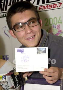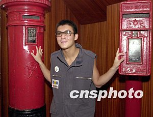 歌星陳冠希8月18日在香港出席新城電臺與香港郵政合辦《Edison聯fan集郵Teen》參觀郵政總局活動,對兩臺舊式郵筒頗具興趣。作者:鄧慶樂