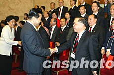 全國政協主席賈慶林二十一日在北京人民大會堂會見以余國春為團長的香港廣東社團總會訪京團。中新社記者:毛建軍