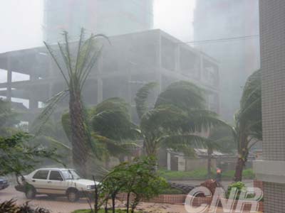 據廣東省氣象臺監測,臺風“科羅旺”25日凌晨在擦過海南文昌東北部沿海后,于早晨6時15分前后在廣東省湛江市徐聞縣前山鎮登陸。臺風登陸時最大風力為每秒33米,最低氣壓965百帕。25日早晨7時,其中心位于北緯20.4度,東經110.3度。