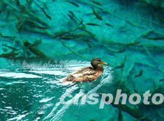 馳名中外的四川省九寨溝風景旅游地八月正是良辰美景,一只野鴨與魚兒共游于青山綠水之中,其樂也融融。中新社記者:賈國榮